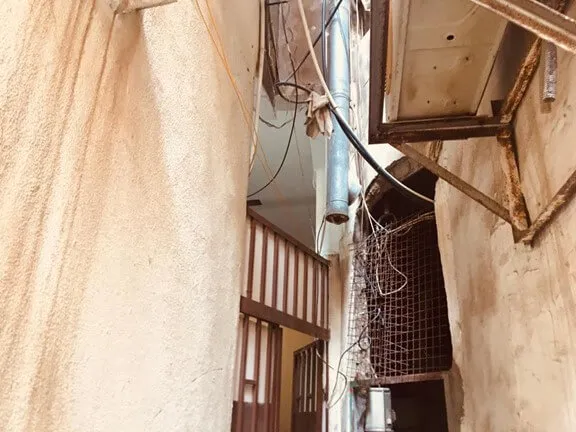 6 meters square, a broken refrigerator, devastated closets, and shattered windows, this place hosts Leila and her sister Sabah in addition to 2 of their relatives who find a way to sleep on the floor.